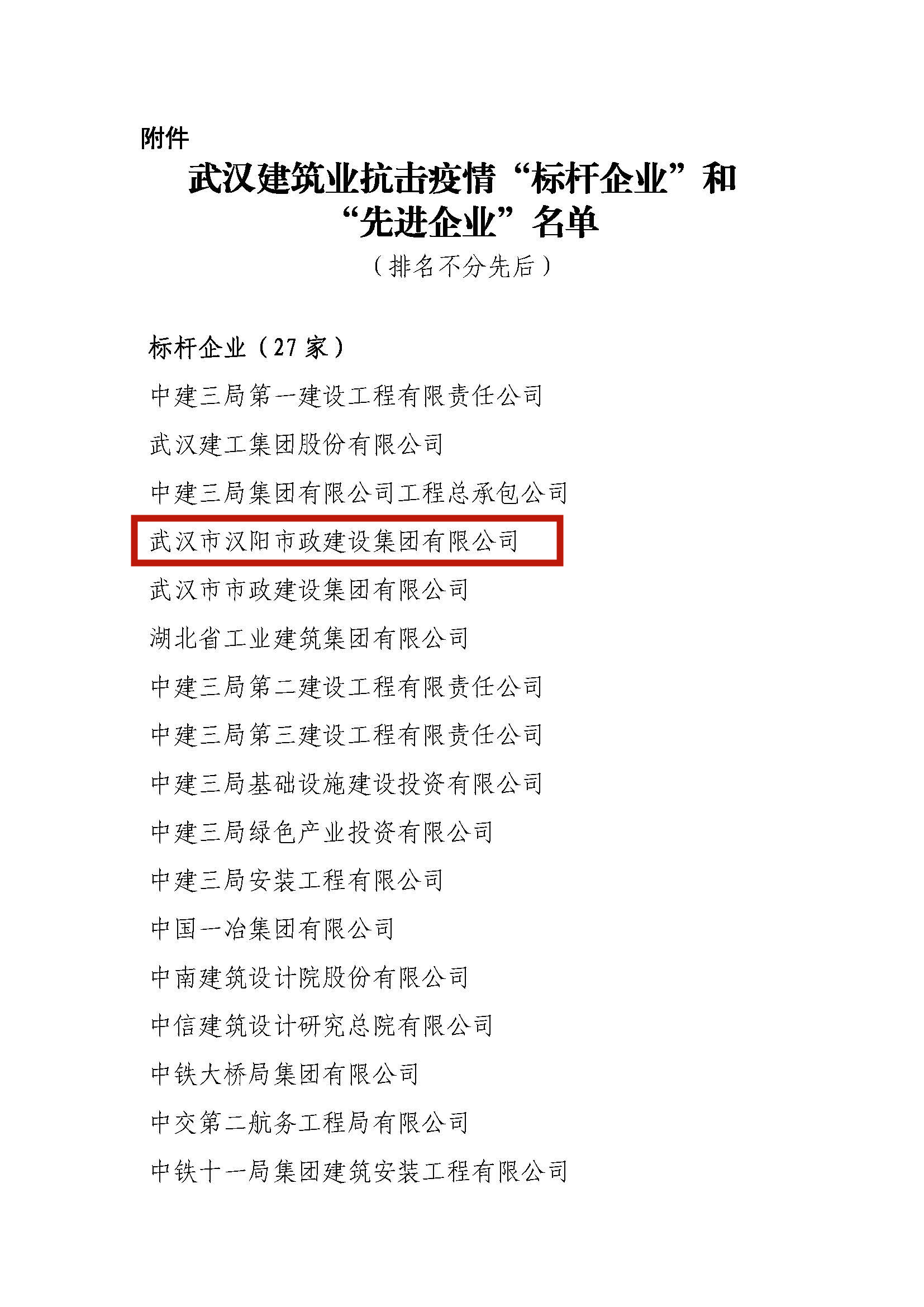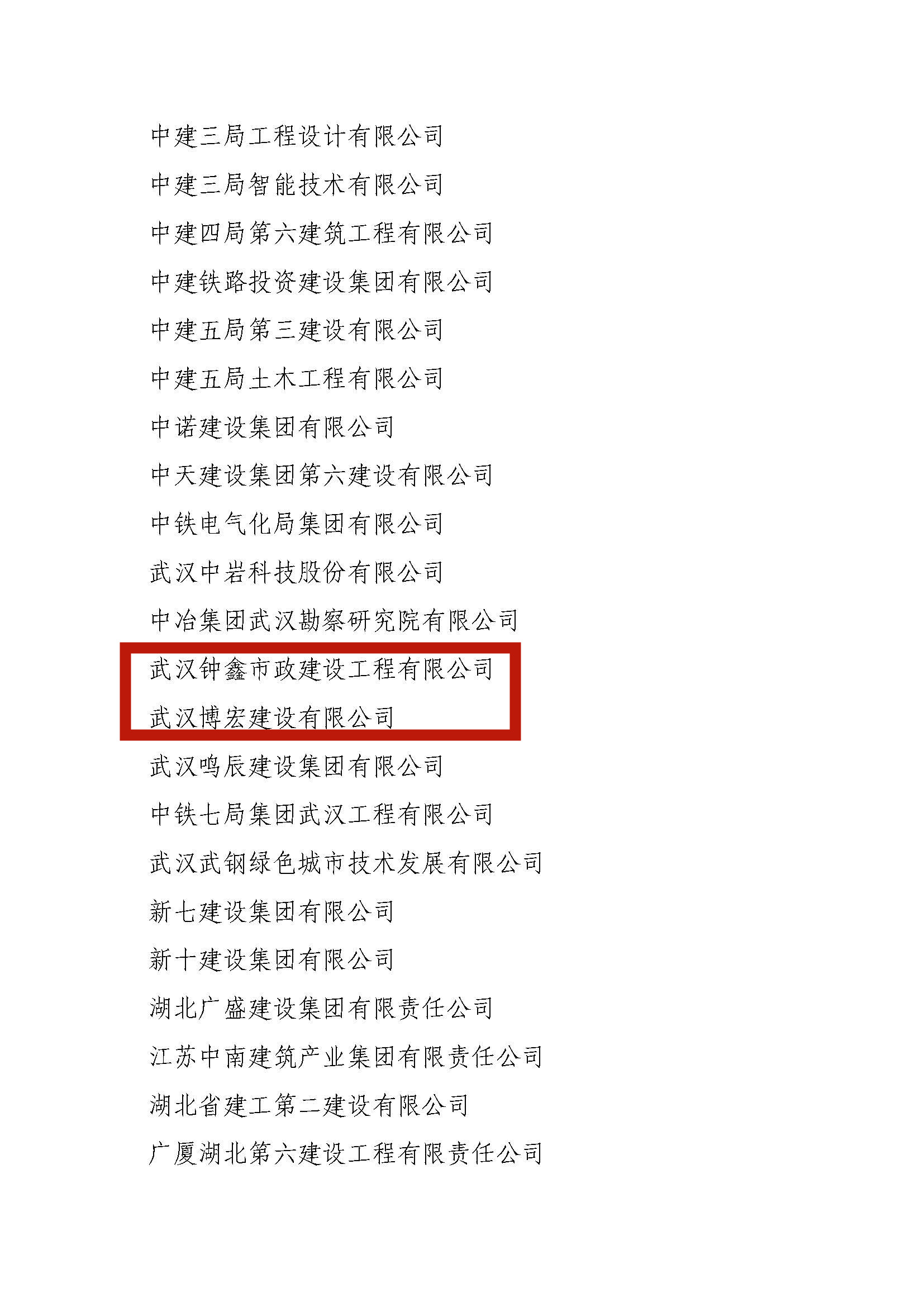 ? ? 近日,武漢建筑業(yè)協(xié)會表彰武漢建筑業(yè)抗擊疫情的“標(biāo)桿企業(yè)”、“先進(jìn)企業(yè)”。其中集團(tuán)公司榮獲“標(biāo)桿企業(yè)”榮譽稱號,武漢鐘鑫市政建設(shè)工程有限公司、武漢博宏建設(shè)有限公司、武漢天創(chuàng)市政建設(shè)工程有限公司榮獲“先進(jìn)企業(yè)”榮譽稱號。