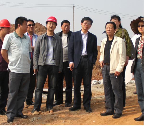 區(qū)長(zhǎng)(右一) 熊局長(zhǎng)(右二) 胡總(左一) 李總(左二) 4月23日上午區(qū)長(zhǎng)一行在建設(shè)局熊局長(zhǎng)、漢陽(yáng)市政集團(tuán)公司胡總、天創(chuàng)公司總經(jīng)理李總等有關(guān)領(lǐng)導(dǎo)的陪同下視察龍陽(yáng)湖東路。(圖/文:李偉琪)