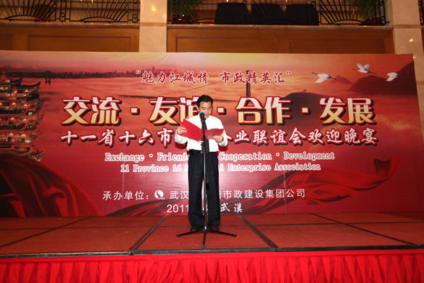 4月21日,【魅力江城情 市政精英匯】暨2011年十一省十六市市政企業(yè)聯(lián)誼會在武漢晴川假日酒店隆重舉行。中國市政協(xié)會秘書長沈洵先生及區(qū)領(lǐng)導(dǎo)出席了本次聯(lián)誼會。