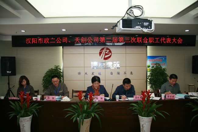 2015 年 4月 16日上午 9: 00,漢陽市政二公司、天創(chuàng)公司第二屆第三次聯(lián)合職工代表大會(huì)在閩東國際 26樓會(huì)議室召開。大會(huì)應(yīng)到職工代表 39人,實(shí)到 38人。漢陽市政建設(shè)集團(tuán)公司領(lǐng)導(dǎo)出席了本次會(huì)議。