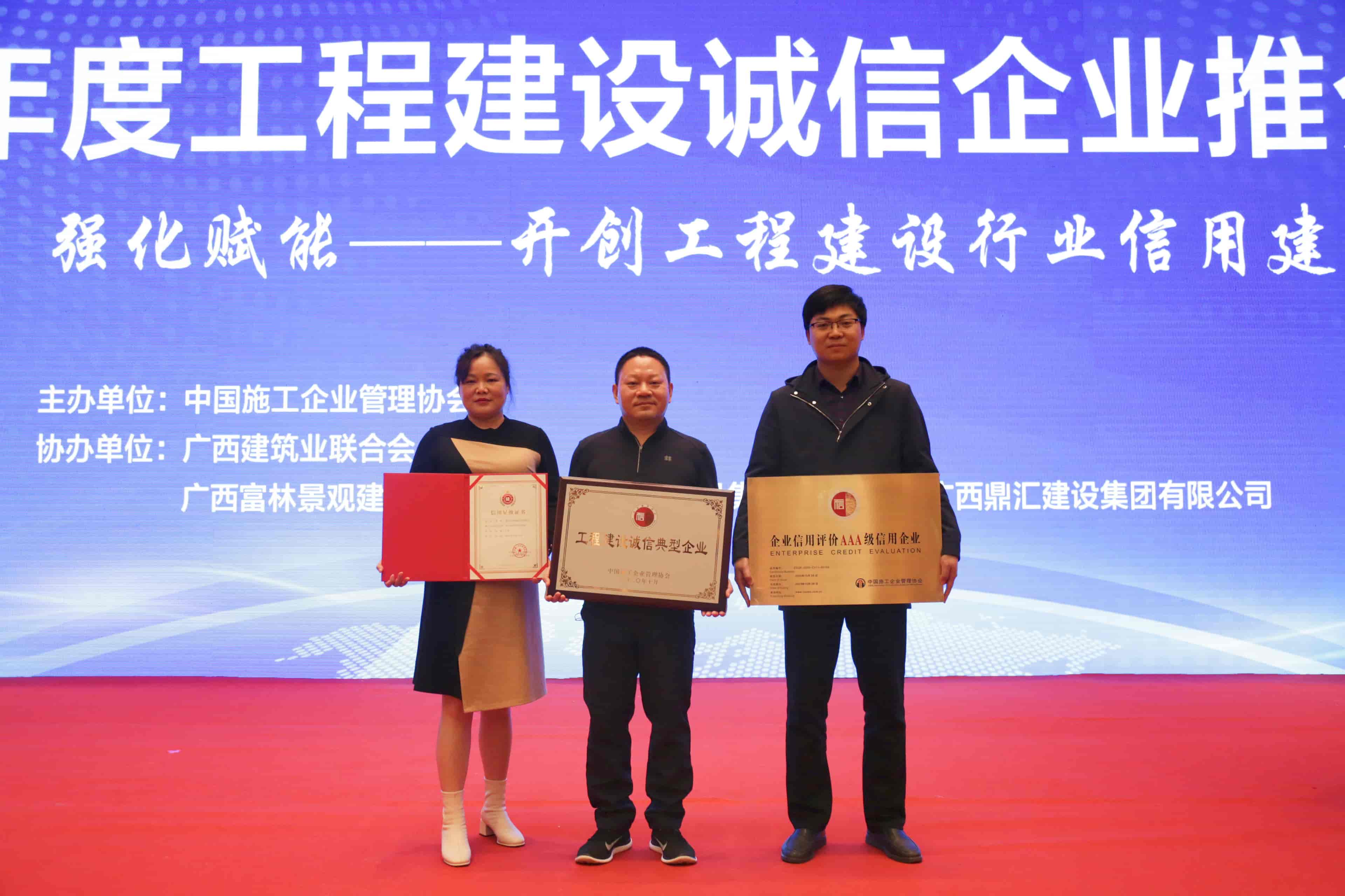 ? ? ? 12月4日,中國施工企業(yè)管理協(xié)會(huì)在廣西南寧召開“2020年度工程建設(shè)誠信企業(yè)推介大會(huì)”。漢陽市政、漢陽市政天創(chuàng)公司、漢陽市政博宏公司榮獲“2020年度工程建設(shè)誠信典型企業(yè)”“信用星級(jí)企業(yè)”“AAA信用等級(jí)企業(yè)”3項(xiàng)榮譽(yù),為集團(tuán)企業(yè)信用獎(jiǎng)項(xiàng)開創(chuàng)了新篇章。?