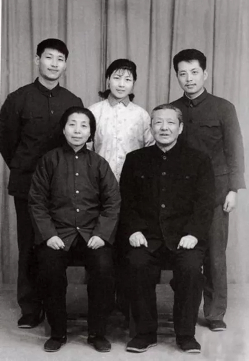 △1975年,習(xí)仲勛和齊心與兒女在洛陽(yáng)紅旗照相館合影。后排左起:兒子習(xí)近平、女兒習(xí)安安、女婿吳龍。來(lái)源:《習(xí)仲勛畫(huà)傳》