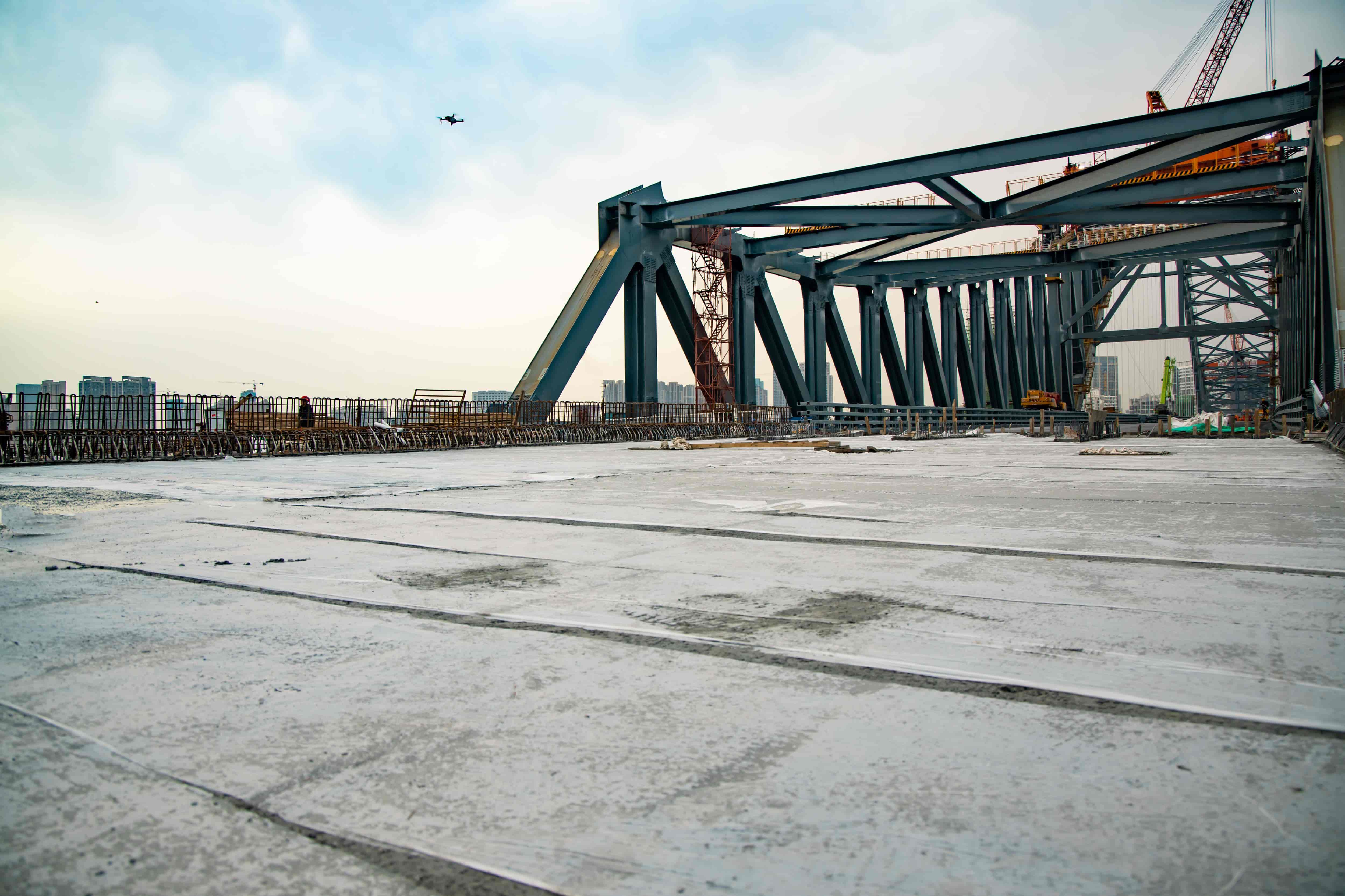 2018年4月,江漢七橋漢陽岸引橋首樁基完成灌注,2021年3月,漢陽岸引橋最后一跨箱梁順利澆筑完成,歷經(jīng)36個月,漢陽市政建設者堅守管理底線、嚴把質量關、精細作業(yè)、科學組織,經(jīng)歷疫情、洪水雙重影響,出色地完成了節(jié)點目標。