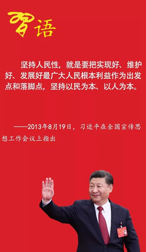2013年8月19日,習(xí)近平總書(shū)記在全國(guó)宣傳思想工作會(huì)議上特別強(qiáng)調(diào)了黨性和人民性的統(tǒng)一,提出要樹(shù)立以人民為中心的工作導(dǎo)向。黨的十八大以來(lái),關(guān)于宣傳思想文化工作,黨中央還召開(kāi)了文藝工作座談會(huì)、黨的新聞?shì)浾摴ぷ髯剷?huì)、網(wǎng)絡(luò)安全和信息化工作座談會(huì)、哲學(xué)社會(huì)科學(xué)工作座談會(huì)、全國(guó)網(wǎng)絡(luò)安全和信息化工作會(huì)議等重要會(huì)議。在這幾次講話中,習(xí)近平總書(shū)記毫無(wú)例外地強(qiáng)調(diào)要堅(jiān)持以人民為中心的重要思想,引起社會(huì)各界強(qiáng)烈反響。今天,黨建網(wǎng)微平臺(tái)同您一起回顧總書(shū)記部分重要論述。