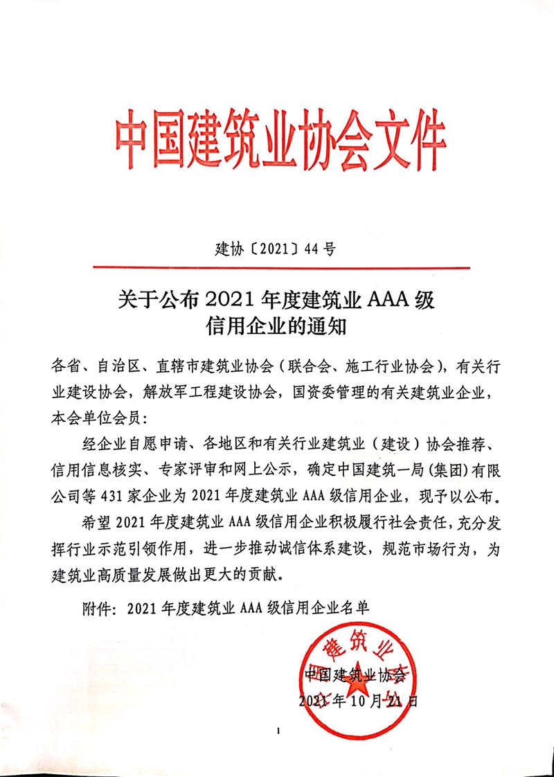 近日,中國建筑業(yè)協(xié)會認定漢陽市政致遠公司、天創(chuàng)公司、博宏公司、鐘鑫公司為“2021年度建筑業(yè)AAA級信用企業(yè)”,3年后再次獲評,表明業(yè)內對漢陽市政四家分子公司的信用建設成績持續(xù)給予高度肯定。