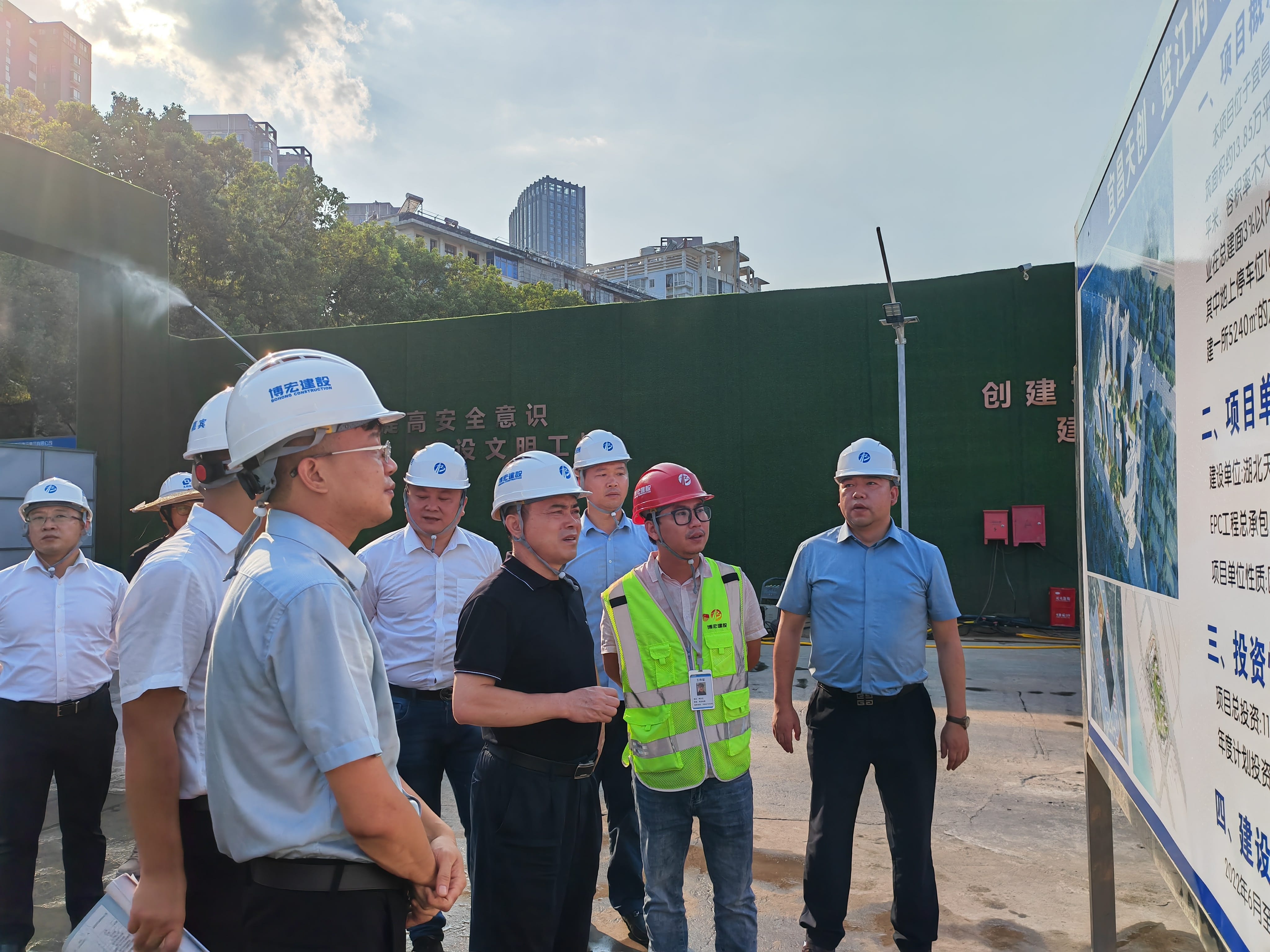 8月18日下午,漢陽市政黨委書記、董事長嚴(yán)悌文一行前往宜昌天創(chuàng)·攬?jiān)赂?、天?chuàng)覽江府項(xiàng)目調(diào)研慰問,向辛苦戰(zhàn)斗在外地市場一線的同志們表示了親切關(guān)懷與慰問,并希望大家在工作的同時注意高溫防暑和施工安全。經(jīng)營公司市場開發(fā)部負(fù)責(zé)人馮寶貴、漢陽市政天創(chuàng)地產(chǎn)公司副總經(jīng)理陳偉、博宏公司副總經(jīng)理李磊和王哲等陪同調(diào)研。