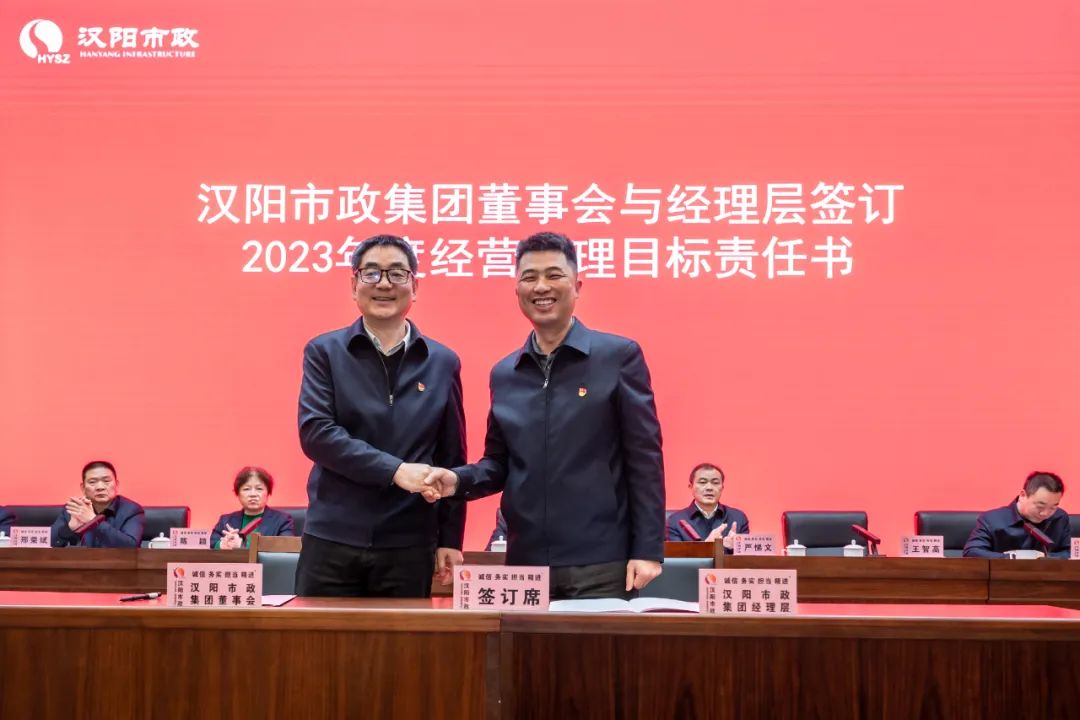 漢陽市政集團(tuán)董事會(huì)與經(jīng)理層簽訂2023年度經(jīng)營(yíng)管理目標(biāo)責(zé)任書。