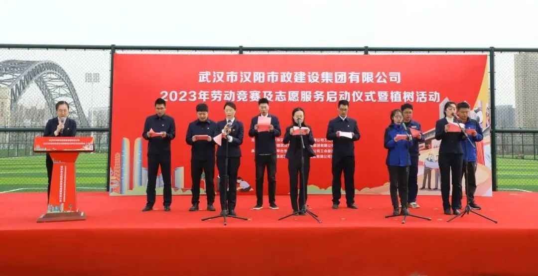 活動在公司總經(jīng)理王智高致辭中拉開帷幕,他指出要用好勞動競賽、志愿服務(wù)、創(chuàng)先爭優(yōu)等載體,大力倡導(dǎo)全體干部職工立足崗位、積極思考,勤奮勞動、創(chuàng)新勞動。總工程師荊武作生產(chǎn)動員講話,號召大家認清形勢,鼓足干勁,迅速掀起生產(chǎn)經(jīng)營高潮;科學組織,周密安排,確?,F(xiàn)場管理與生產(chǎn)經(jīng)營扎實有序;明確目標,狠抓落實,確保生產(chǎn)任務(wù)圓滿完成。隨后在勞動競賽環(huán)節(jié),黃桂華宣讀《漢陽市政2023年度職工勞動和技能競賽實施方案》,勞模代表葉清輝代表全體參賽職工宣讀勞動競賽倡議書,漢陽區(qū)總工會黨組書記、常務(wù)副主席李鐘、團區(qū)委副書記焦冉及漢陽市政出席領(lǐng)導(dǎo)為2023年引領(lǐng)性勞動競賽項目單位代表授旗。