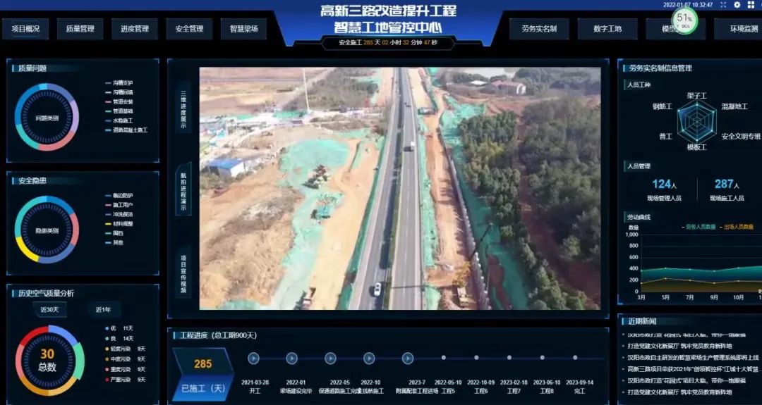 高新三路項目以BIM為載體,以業(yè)務為核心,以數(shù)據(jù)為導向,以成本管理、質量管理、進度管理、安全管理、設計管理、技術管理、物資管理、合同管理為模塊,展開數(shù)字化相關管理工作,將模型的管理數(shù)據(jù)與設計屬性數(shù)據(jù)進行系統(tǒng)集成,借助BIM+GIS提高項目管理效率和質量。對項目進行過程控制及分析,打通各個業(yè)務之間、各個參與單位之間數(shù)據(jù)聯(lián)系,確保數(shù)據(jù)唯一性,解決數(shù)據(jù)孤島,搭建“數(shù)字化智慧工地”,為管理決策提供依據(jù),為項目管理提供強大、智能、高效、精準的管理手段。