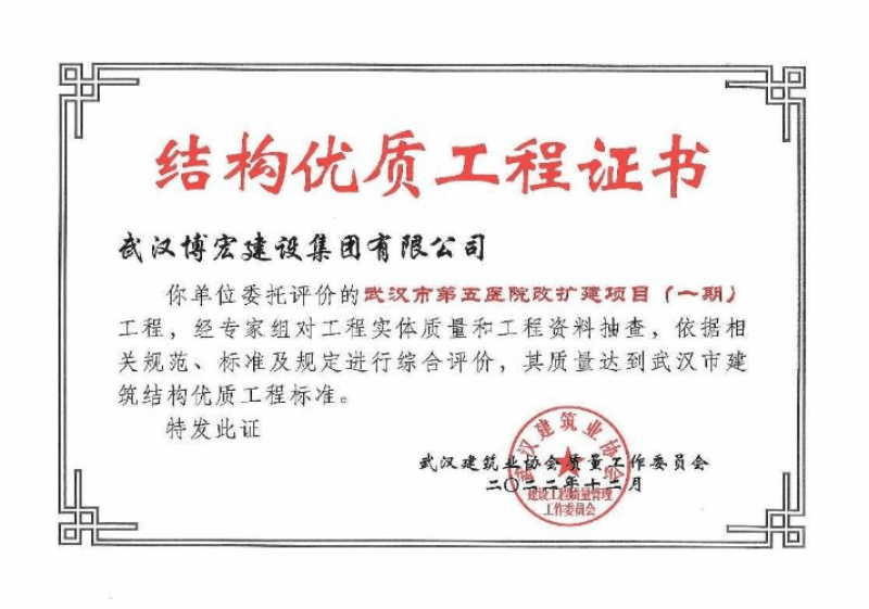 武漢市第五醫(yī)院改擴建項目榮譽